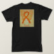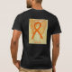 Leukaemia awareness uses an orange ribbon for its cause awareness. The shirt art features an orange awareness ribbon angel painting. The awareness angel t-shirt message notes "Leukaemia Awareness". There is a large image on the back of the shirt and a smaller picture on the front of the shirt. The orange awareness angel ribbon art apparel can be customised with personalised messages to make great cause event clothing for fundraiser shirts, group team walk shirts, awareness tshirt gifts, or other special cause events occasions for merchandise to help increase this cause's awareness in public for society's help in creating help & cause change.
