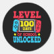 Level 100 Days Of School Unlocked Gamer Video Game Classic Round Sticker
