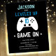 Simple minimalist gaming controller gamer birthday invitation. You've reach level any age! All text is custom. Fun simple neon lines on the back of card.