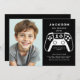 Level Up Gamer Boys Black Birthday Party Photo Invitation