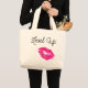 Natural colour Jumbo Tote with "Level Up " written in black script font with a reddish pink lipstick kiss image under the words .