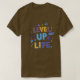 The "Level Up Life" t-shirt design features a vibrant, pixelated video game theme with a character ascending a staircase of levels. Bold, retro-style text reads "Level Up Life" above the figure, symbolising personal growth and achievement. The design combines nostalgic gaming aesthetics with motivational messaging, perfect for gamers and life enthusiasts alike.