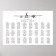 This seating chart poster features a modern minimalist design and 24 tables layout. The script text heading is an image that cannot be edited. The heading image can be resized to fit any poster size. All of the other text is fully editable. For more advanced customisation of this design, simply select the "Customise It" button above.