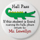 As a teacher, my hall passes disappear daily. They leave the room and never return ... or they come back dripping wet from being left by the restroom sink ... gag. Pin this on. Have the student sign out. Have the student sign back in and return the pass ... safe and dry ... ; ) Personally, I think the school should purchase these for all ... grinning here ! Thanks, and have a super year ! Contact me any time by leaving a comment, Sharon Rhea Ford (NBCT, Art) www.zazzle.com/sharonrhea* Please tell your friends and come back via my address! As you make this your own, you can easily enlarge or reduce the text, change the font, etc.