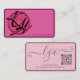 Brilliant fucshia front with logo, alias, and name-bordered; light lilac with dusty rose frame, monogram for business, with email and link.