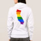 Hoodie with LGBT (lesbian, gay, bisexual, and transgender people) rainbow stripes map of American state of California, gay pride flag design, by pinkbrickroad