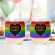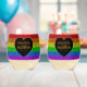 LGBT flag rainbow sparkles heart wedding Stemless Wine Glass