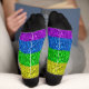 LGBT flag vibrant rainbow glitter sparkle on black Socks. Personalise unique fashionable sparkly gift for her and him. Sparkly LGBT flag in vibrant red, orange, yellow, green, blue and purple vibrant glitter sparkles. *photo of sparkles glitter!