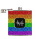 LGBT flag vibrant rainbow glitter sparkle Monogram Hip Flask