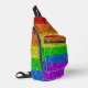 LGBT flag vibrant rainbow glitter sparkles sling bag backpack. Colourful bright LGBT fashion accessory bags for everyone.