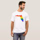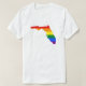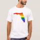 Basic T-Shirt with LGBT (lesbian, gay, bisexual, and transgender people) rainbow stripes map of American state of Florida, gay pride flag design, by pinkbrickroad