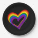 LGBT Gay Pride Love Rainbow Flag Heart LGBTQ Party Cute Romantic Elegant Black Paper Plate
