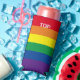 LGBT Gay Rainbow Pride Flag personalised can cooler from Ricaso - fun top themed can cooler - leave text on the front as is or change to suit