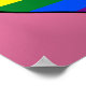 Poster with heart design in colors of LGBT (lesbian, gay, bisexual, and transgender people) rainbow stripes pride flag, rainbow love design on pink background