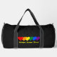 Customizable Duffle Bag with hearts design in colors of LGBT (lesbian, gay, bisexual, and transgender people) rainbow stripes pride flag, rainbow love design