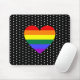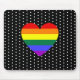 A rainbow heart with the colors of the LGBT pride flag. Black background with small white dots on.
