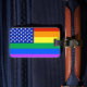 A LGBT style American flag complete with the stars and stripes of rainbow colours.