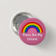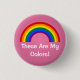 Round Button with LGBT (lesbian, gay, bisexual, and transgender people) rainbow stripes, gay pride flag design on pink background, "These Are My Colours" template text, by pinkbrickroad