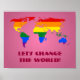 Value Poster with LGBT (lesbian, gay, bisexual, and transgender people) rainbow stripes map of world, gay pride design on pink background, Let's Change the World template text, by pinkbrickroad
