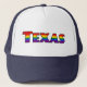 Trucker Hat with text sign "Texas" in colors colors of the LGBT (lesbian, gay, bisexual, and transgender people) rainbow pride flag, rainbow love gay American state pride lgbtqiap+ design