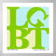 Lesbian, gay, bi, and trans, we are all more than a clump of abbreviated letters. The same is true of this design. Like the LOVE pop art of the 1960s, the letters LGBT are stacked, merged, divided, and rearranged into new shapes and relationships. Each part is defined as much by its relation to the entire design as its own identity. Be proud! Be seen! Be part of the art with this striking design.