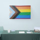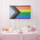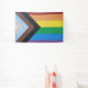 The "Progress" variation of the Rainbow flag adds a chevron along the hoist that features black, brown, light blue, pink, and white stripes to bring those communities (marginalised people of colour, trans individuals, and those living with HIV/AIDS and those who have been lost) to the forefront; "the arrow points to the right to show forward movement, while being along the left edge shows that progress still needs to be made."