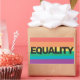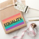 We're all Equal. LGBTQ pride sticker featuring the customisable wording "EQUALITY" in black all caps lettering, on a rainbow background.