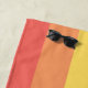 Show your pride with this LGBTQ themed beach towel featuring the wording Love is never wrong in black lettering decorated with a little rainbow heart, on a colourful rainbow flag background.