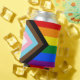 Can Cooler: Rainbow Flag & the "Progress" variation adds a chevron along the hoist that features black, brown, light blue, pink, and white stripes to bring those communities (marginalised people of colour, trans individuals, and those living with HIV/AIDS and those who have been lost) to the forefront; "the arrow points to the right to show forward movement, while being along the left edge shows that progress still needs to be made.