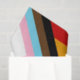 The "Progress" variation of the Rainbow flag adds a chevron along the hoist that features black, brown, light blue, pink, and white stripes to bring those communities (marginalised people of colour, trans individuals, and those living with HIV/AIDS and those who have been lost) to the forefront; "the arrow points to the right to show forward movement, while being along the left edge shows that progress still needs to be made."