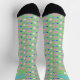 This awesome pair of patterned crew socks features a digital art image of a caterpillar with a sad face, a cocoon or chrysalis and a butterfly. The caterpillar is blue at the back and becomes paler and more purple with each body segment. He has pretty curled antennae and big eyes with pale pupils. He is unhappy because he wants to change his gender. The cocoon is blue, pink and white representing the transgender pride flag and the change of gender or metamorphosis. The butterfly is pink with pretty patterns on her wings and a big smile on her face. She represents the happiness after the change of gender has been completed. This design is for male to female gender reassignment. This design is to show my love for and support of all trans people and those who love and support them. There is text in the colours of the transgender pride flag that reads Trans and Proud.