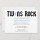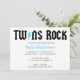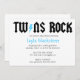 Design by LGC © 2013. Twins Rock invitation. Perfect for the musical or Rock and Roll themed baby shower. Look for the blue, pink and yellow colour schemes.