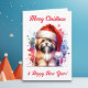 Lhasa Apso Dog in Santa Hat Christmas Card