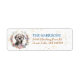 The left side of these return address labels feature an image of a spring flower wreath in colours of soft pink, blue, gold, green and cream. At the centre is a portrait of an adorable Lhasa Apso Dog. Tiny gold confetti gives a subtle sparkle to the background. Your custom text is in blue and brown gold at the right.