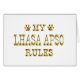 These golden paw prints and the golden lettering saying My Lhasa Apso Rules is a wonderful way to show others your love for your dog.