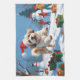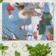 Lhasa Apso Running in Snow with Christmas Hat Tea Towel