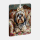 A cute Lhaso Apso Christmas ornament that you can add a personalised custom message on the back. The front has a cute Lhaso apso puppy dog sitting on a quilt on the couch.