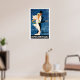 This vintage travel poster is of a man and woman in formal dress out for a night on the town. He is wearing a tux and top hat and she is in a white gown.