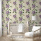 Liana plant pattern with purple Clematis blossom Wallpaper