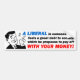 Liberal: is someone who feels a great debt to society; which he proposes to pay off with your money! Bumper Sticker
