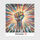 Powerful Symbolism: A raised fist paired with a burst of multi-coloured elements, representing unity and empowerment.