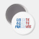 Liberte, egalite, fraternite. Freedom, equality, brotherhood. Motto of the Republic of France, done in colours of the French flag (blue, white and red).