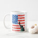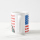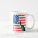 A coffee mug with a US flag and the Statue of Liberty, celebrating freedom!