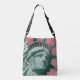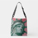 The original artwork by ZoeSPEAK on this Crossbody Tote Bag features the face of freedom, the Statue of Liberty up close, her portrait painted on the brick wall of a building, a woman proudly proclaiming liberty, equality and brotherhood in the tradition of the country (France) which gave Lady Liberty to the United States.