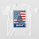 Very cool "Liberty" graphic t shirt. Design features the Gadsden Flag rattlesnake and vintage style American Flag background. A great way to show your patriotism.