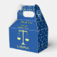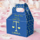 This awesome Birthday Party favour box features a digital art image of a pair of golden coloured weighing scales with the word Libra underneath in gold text. A fun design for people celebrating a Birthday born between September 23 and October 22 under the star sign of Libra. There is custom text so you can include a name and message.