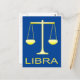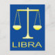 This awesome postcard features a digital art image of a pair of golden coloured weighing scales with the word Libra underneath in gold text. A fun design for people celebrating a Birthday born between September 23 and October 22 under the star sign of Libra.