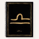 Stylised hammered gold Libra astrology zodiac birthday symbol in a hand drawn gold double line frame. A hardcover or softcover notebook with your choice of inside pages. Choose from sketchbook, bullet journal, checklist, graph paper, recipe book, or lines in various widths and colours. Customisable. Aquarius text in a fine script on the front cover can be personalised, text can also be added on the back.