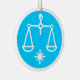 The scales (graphic symbol of Libra) shown in the traditional colour of Libra, sky blue. Simple, clean lines.