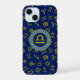 Libra Zodiac+Astrology Symbols Pattern Gold+Blues iPhone 15 Case